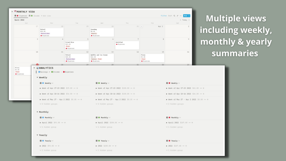 Are you having trouble keeping track of your daily expenses? Want to start saving? Well, this template is just for you. Your all in one Personal Finance Tracker within Notion.