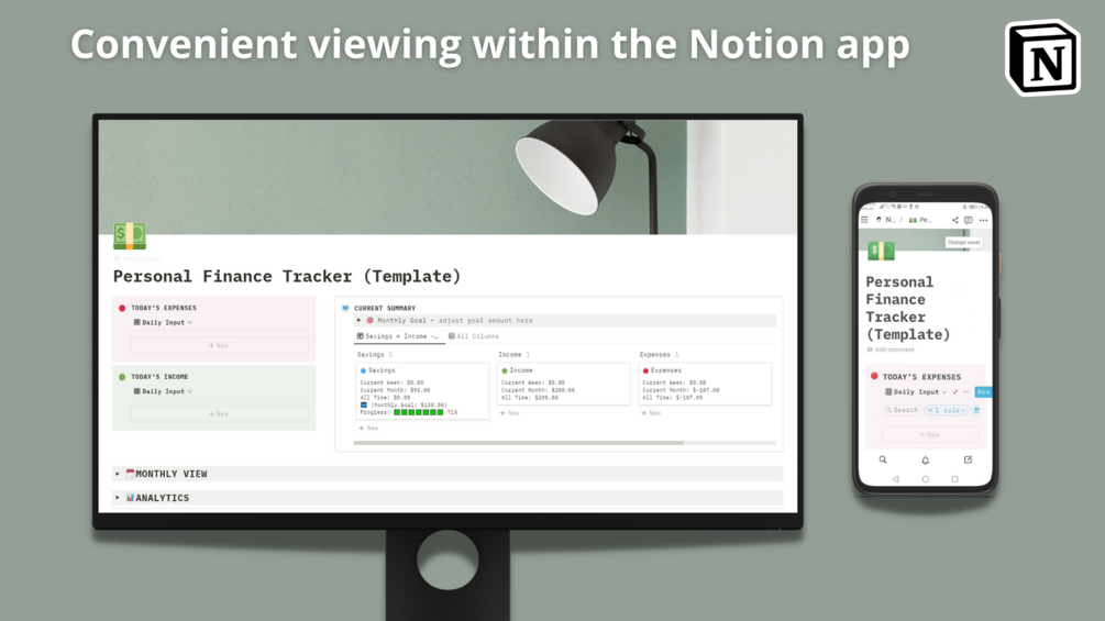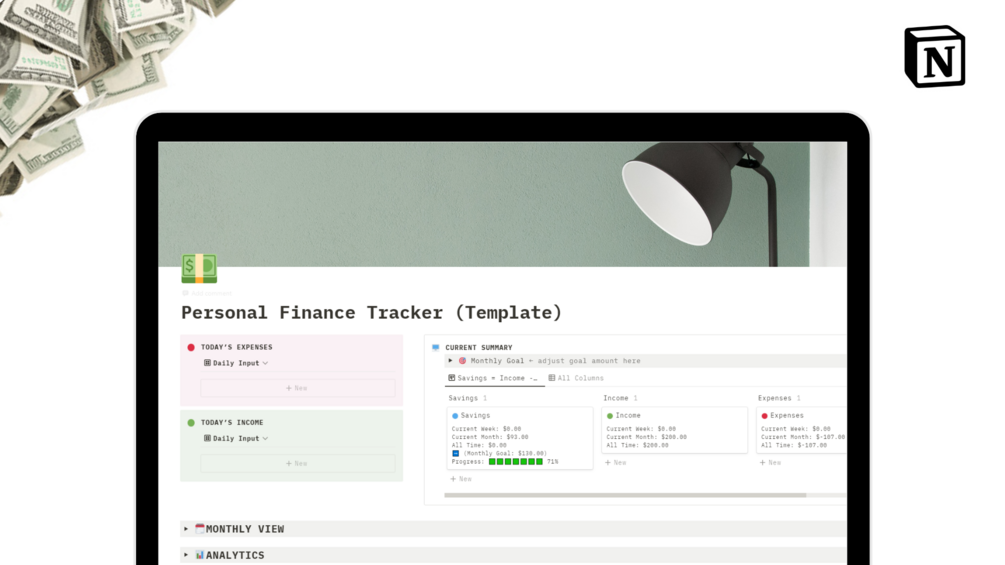 Are you having trouble keeping track of your daily expenses? Want to start saving? Well, this template is just for you. Your all in one Personal Finance Tracker within Notion.